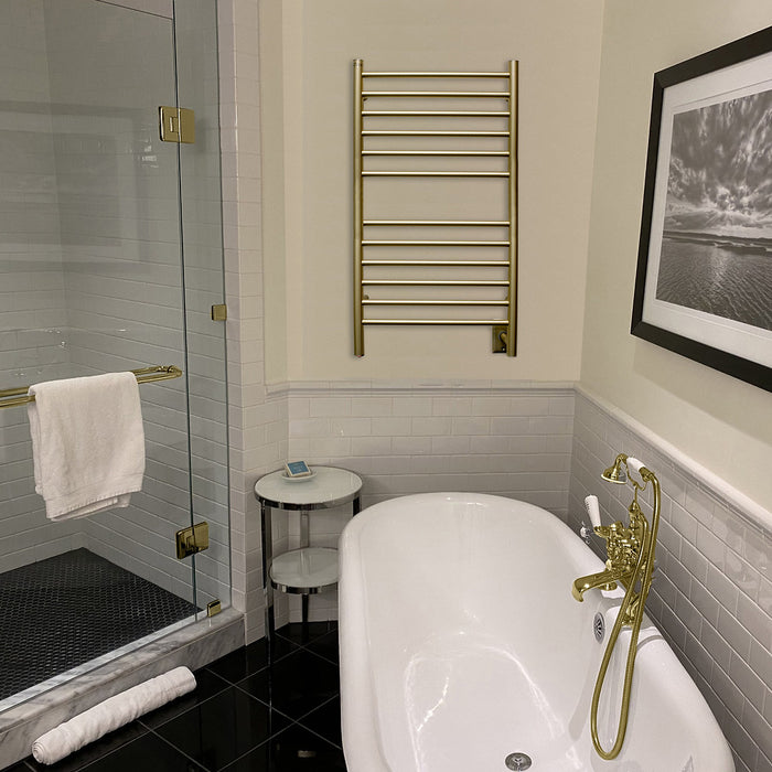 Amba Products RWHL-SSB Radiant Straight 12-Bar Large Hardwired + Plug-in Combo Towel Warmer - 4.75 x 24.5 x 41.75 in. - Satin Brass Finish